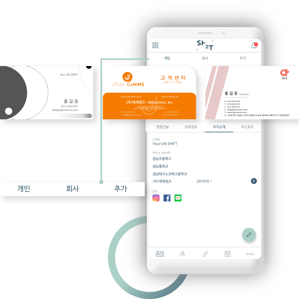 SHIFT는 모바일 명함을 이용한 대면/비대면 글로벌인맥형성관리 통합플랫폼서비스 입니다.