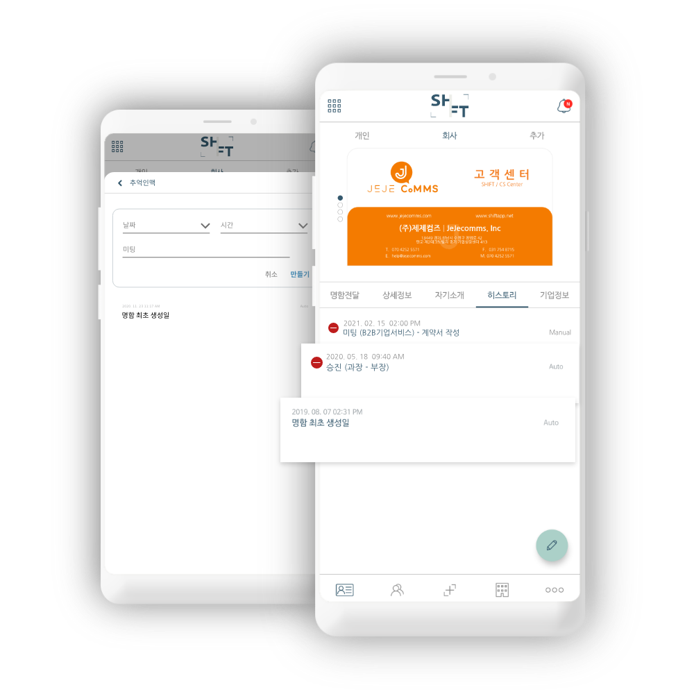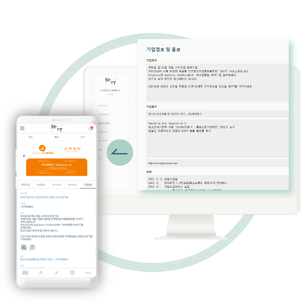 • ‘모바일명함 서비스’라 함은 회사가 제공하는 “SHIFT” 브랜드를 사용하는 서비스를 말합니다.