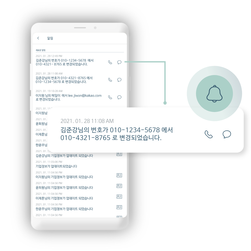 실시간 정보제공을 통해, 가장 빠르고, 정확한 인맥 정보를 확인할 수 있습니다.